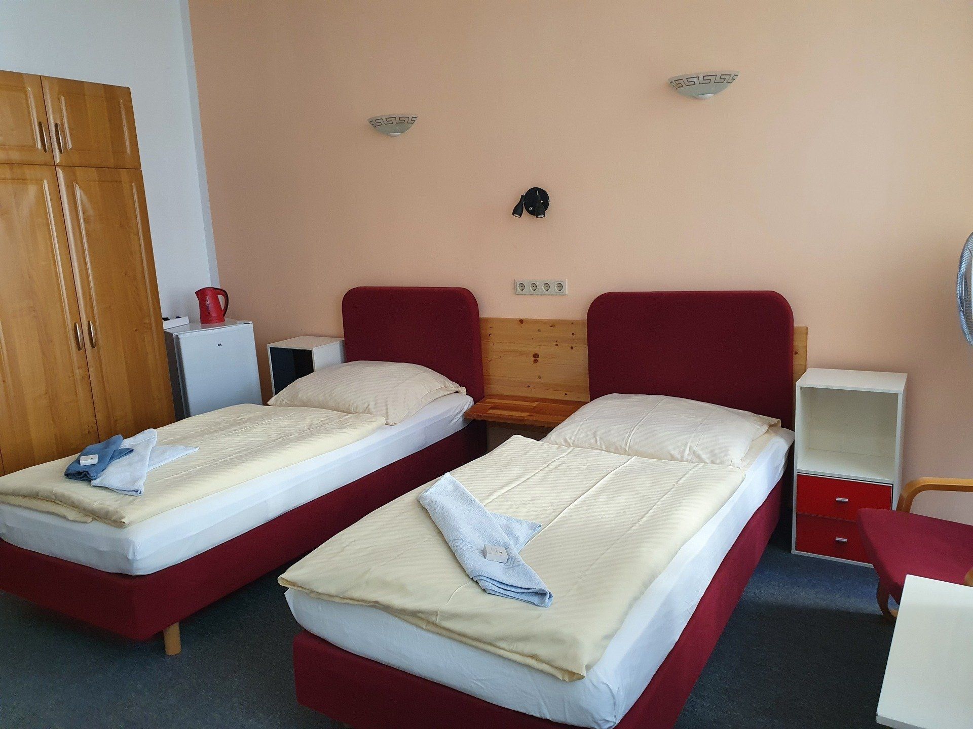 Kühlschrank und Wasserkocher im Zimmer.